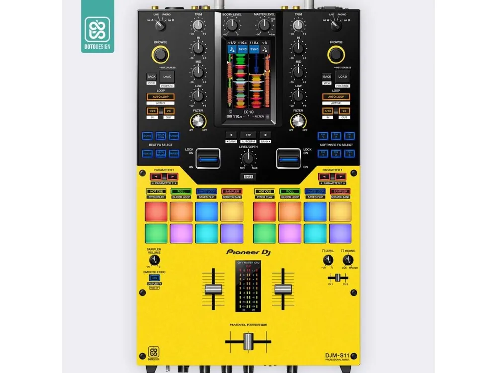 Nalepovací skin pro mixážní pult Pioneer DJM-S11 v provedení COLORS DVS, barva yellow (žlutá).